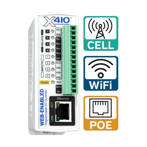 Simplify any industrial application with the X-410™—no software required. The streamlined browser-based user interface and intuitive drop-down menus make creating event-based and scheduled logic faster. Monitor dry contacts and control relays with built-in I/O. Extend functionality by adding other ControlByWeb devices with P2P communication.